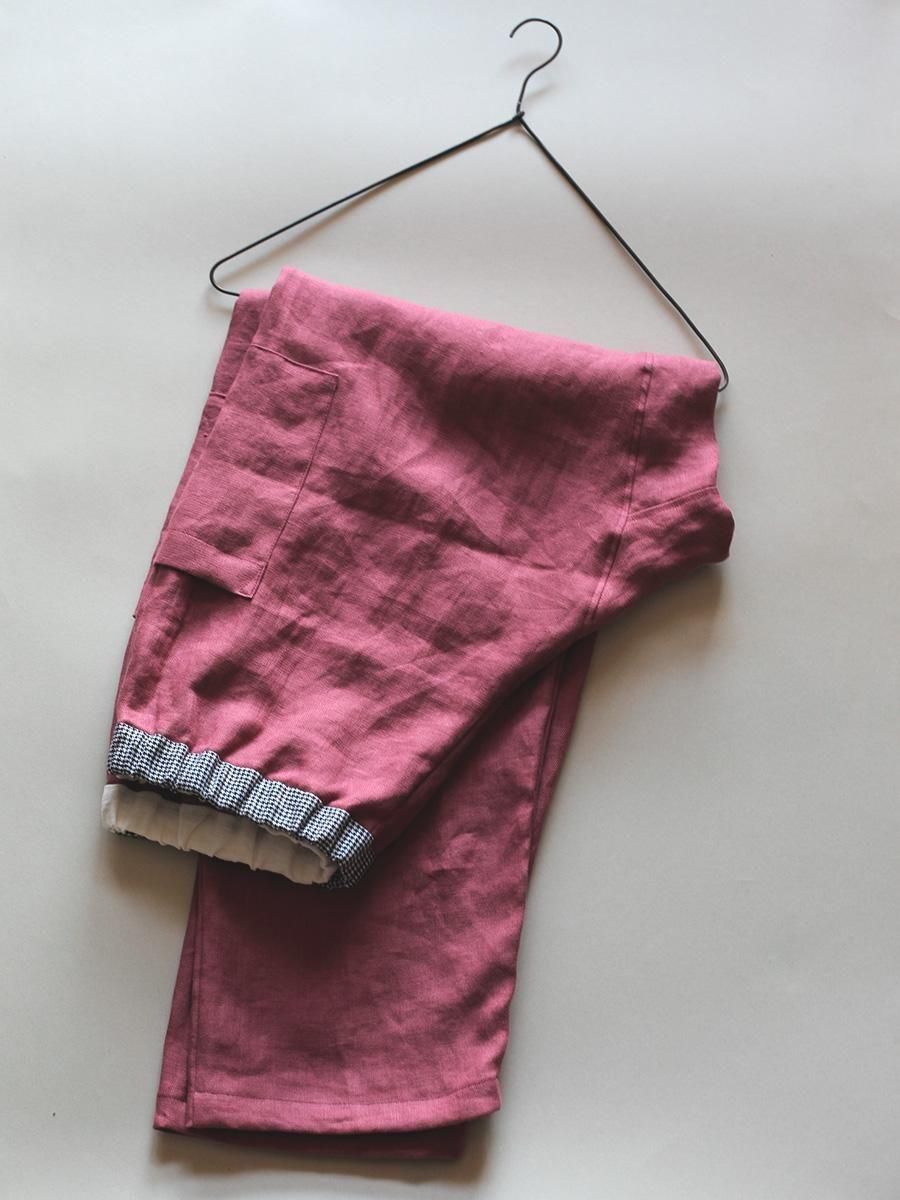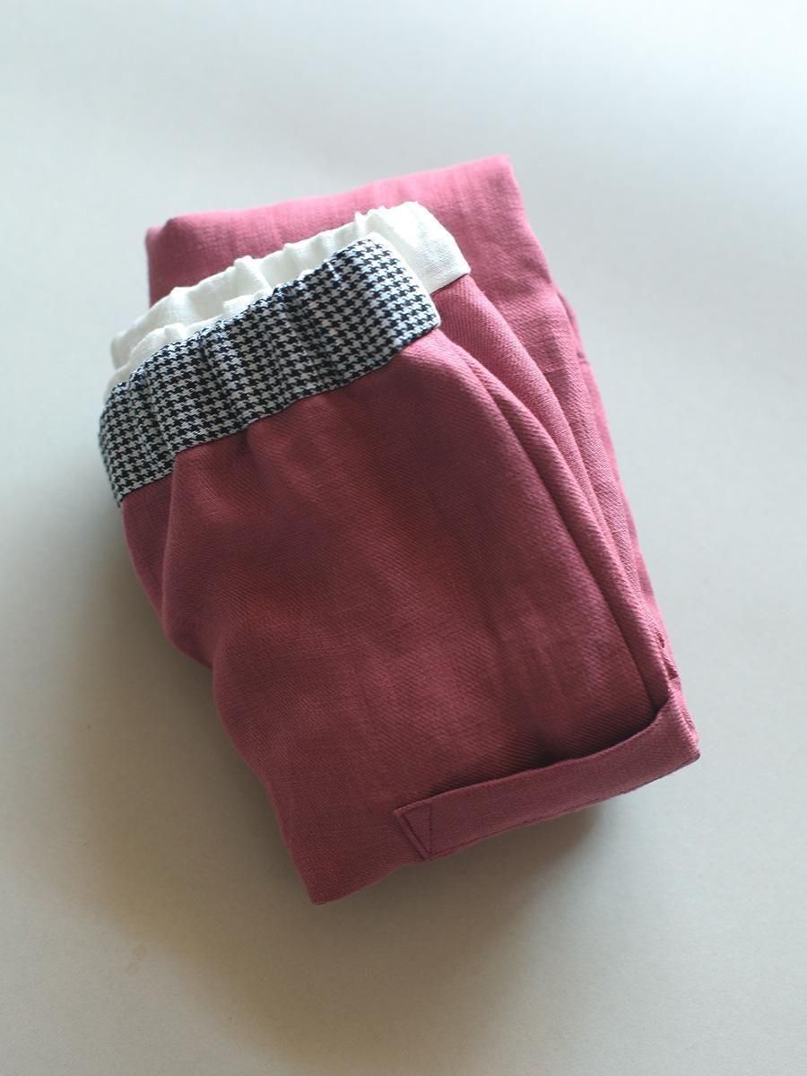 ・定番の農民パンツのリネンと織り方、後染め等の処理が異なります。